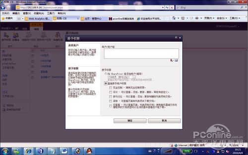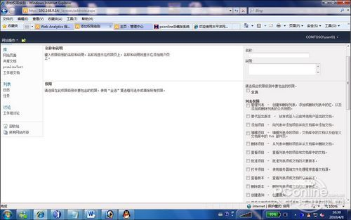 Sharepoint为使用者设定了多种权限在使用时供用户选择,你可以使某一个账户拥有对整个网站的完全使用权限,也可以让其仅具备浏览查看的权限,Sharepoint有一个权限列表,用户可以为账户自由制定权限组合。