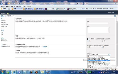 之后系统会提示用户输入库的名称和说明,并制定文档模板。Sharepoint 2010中有多种文档模板可供用户选择,他还专门为office 2003之前的文档设置了模板,这些老版本的文档虽然可以上传并共享,但是并不能保证能够实现Sharepoint 2010的所有功能。我们这里选择的是Microsoft Word文档。