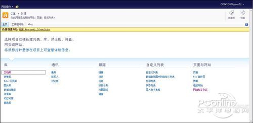 Sharepoint平台上所有要分享的文档可以分存在不同的库中,用户可以新建库并为其起相应的名字,而在创建库的时候也会有多种类型供用户选择,我们要共享文档,就选择文档库。
