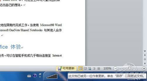 Office 2010软件在多人编辑时会在下面显示正在编辑的用户