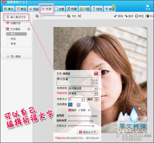 今年开春以来我国西南地区持续干旱,这场严重的旱灾牵动着全国人民的心。从大家自发进行的“捐一元钱、送一瓶水”活动,到腾讯网发动的“水滴行动”,我们可以看到,无论是社会、群体还是个人,都在用自己的方式去帮助旱区人民。为此,美图秀秀特别做了一个为灾区人民祈福的水滴图标,大家在关注旱灾的同时,可以将这个水滴图标放在任意的照片或者相册里,时刻传递着我们的爱心,让更多人参与水滴行动,聚集更多爱心一起为旱灾祈福。