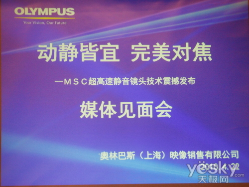 少许的等待之后,奥林巴斯媒体见面会正式开始了。从奥林巴斯官方制作的PPT来看,此次发布会上MSC超高速静音镜头技术还是作为重头戏来安排的。
