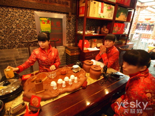 会场一旁的服务人员也透着一股古典之美,既来之,自然留影一张。