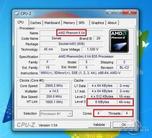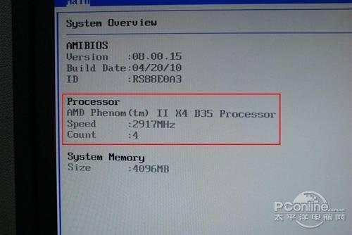 再次进入BIOS查看系统信息,我们看到之前的AthlonII X3 435已经顺利“变身”为PhenomII X4 B35,并且核心数量也显示为“4”,表明开核成功。