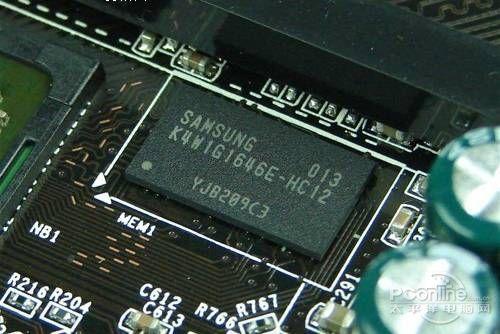 为了更好地帮助HD4250发挥性能,昂达A88GT/128M魔笛版还板载了一颗三星GDDR3-1.2ns高速显存,容量128MB,工作频率1333MHz,并且主板还支持指定一定容量的内存固定作为显存使用。从BIOS来看,昂达已经提供了对CPU和显存的独立超频选项,这次测试主要以开核为主,我的这片昂达A88GT/128M魔笛版可稳定地工作在核心频率700MHz,超频这部分放在下次。