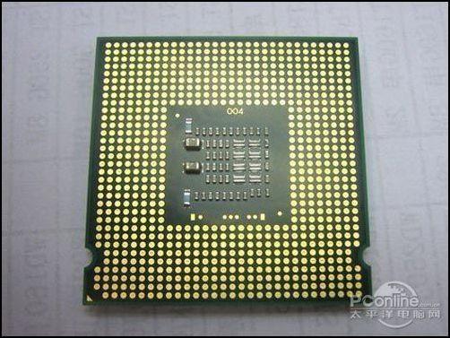 从北面的CPU阵脚图上我们可以看到采用新制程的赛扬系列已经和Core-Dual系列CPU产品毫无二致。就性能参数和实地评测上分析,E3200要小幅领先具有正统酷睿——奔腾架构的E2210。