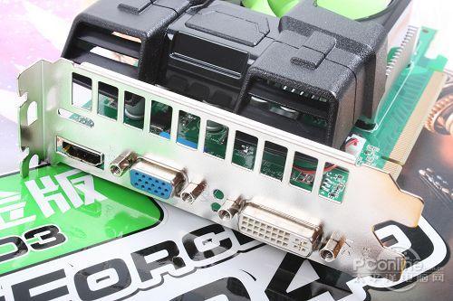 翔升GT240黄金版1G D3显卡在输出接口方面,采用主流必备的原生HDMI+DVI+VGA输出设计,支持各种双屏输出,最大可达2500*1600高分辨输出。