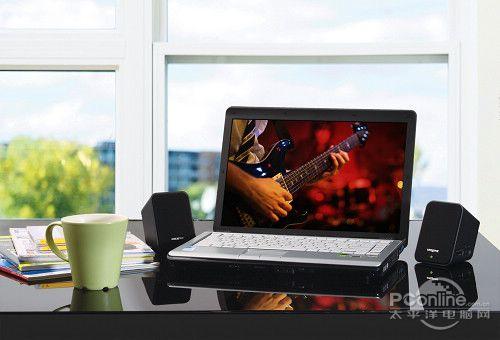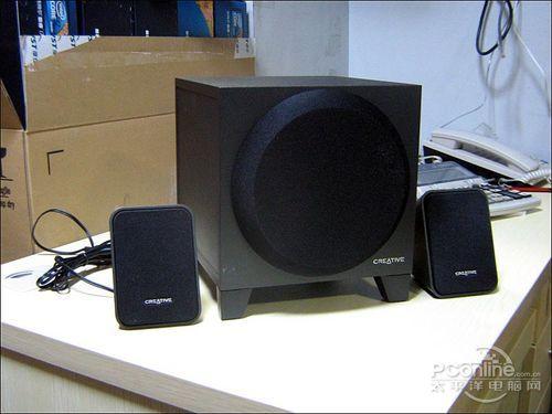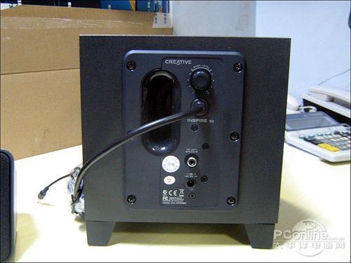 值得一提的是,创新S2音箱的制作工艺非常精良。右声道卫星箱与低音炮固定连接,两者间除了拥有音频连接线以外,在卫星箱上还提供有3.5mm的耳机输出与Line in功能,可以使用户方便的连接音频设备。在机身侧面提供了3.5mm的Audio in/out接口和音量调节旋钮,这种设计方式使S2更加简约精致,有效缩减了机身体积。