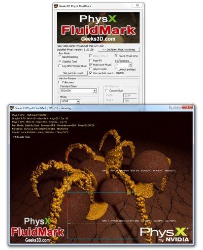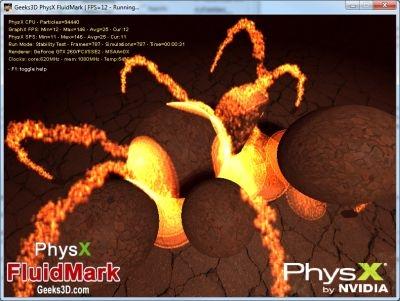 PhysX FluidMark是来自Geeks3D.com网站的一款流体模拟测试工具,基于NVIDIA PhysX物理引擎开发,使用光滑粒子动力学(SPH)来考察处理器和显卡的物理加速能力。