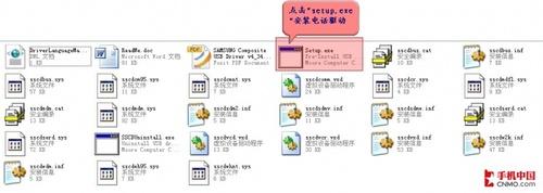 首先在硬盘上解压Samsung CDMA modem 4.34.rar文件得到下图的文件,如下图提示双击【setup.exe】文件默认路安装