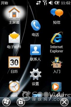 ihtc HD-5采用了微软的Windows Mobile 6.5系统,本身的界面大家可能都很熟悉了,如果想要界面更好看一点,可以到网络上自行下载马尼拉TOUCHFLO 2D或者SPB SHELL 3D等界面软件,使得待机界面看上去更酷。