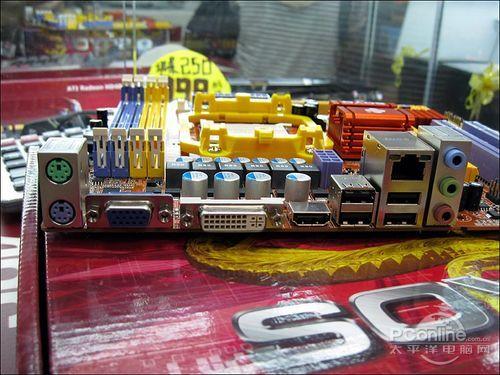梅捷 SY-A88G-GR提供了PS/2键鼠接口,具备VGA+DVI+HDMI全视频接口,还有4个USB 2.0接口,另外由Realtek芯片提供6声道声卡和千兆网卡,充分满足用户需求。