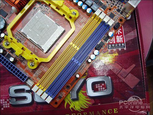 梅捷 SY-A88G-GR采用双内存规格设计,总共提供4条DIMM内存插槽,能分别支持双通道DDR3/DDR2内存。