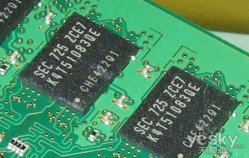 三星金条DDR2 800 2GB内存采用了光洁的绿色PCB设计,背面有DDR2内存特有的超大面积覆铜效果,抗干扰性极强,也确保了良好的电气性能,保证数据传输的安全性。