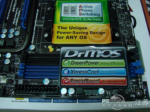 微星 890FXA-GD70还配备了触摸式节能、重启和开机按钮以及易超频旋钮等,对于高端用户也是很实用的。