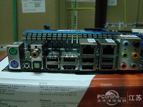 微星 890FXA-GD70主板在I/O接口部分提供了PS/2键盘、鼠标接口,以及同轴、光纤音频输出接口,还有eSATA接口,USB3.0接口,双JR45接口等。
