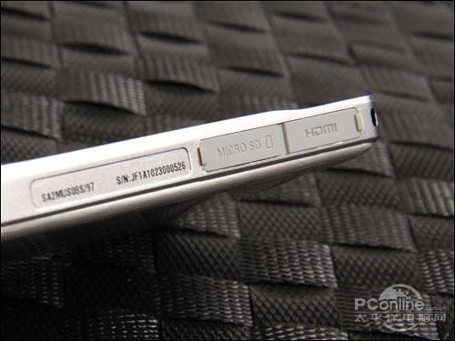 在机身的底侧集中了TF卡卡槽以及HDMI接口,两者都有防尘设计,有效防止灰尘的进入对保护GoGear MUSE内的电子元件以及延长寿命有极大的帮助,同时也保证了机身外观上的整体感。