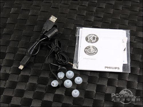 GoGear MUSE随机赠送的配件不算多,USB线、包装说明书、保修卡、以及入耳式噪音隔离耳机,另外根据用户的需要可以自行更换大小不同的硅胶套。