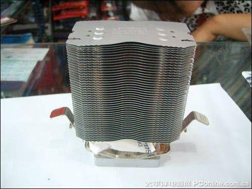 超频三 东海静音版HP937S的底座较为特殊,这也是这款散热器的专利以及成本控制的所在,热管穿透7层铝片叠加的底座与CPU直接接触,这样便提高了热传递效率。