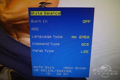 在工程模式中,可以看到S221HQL采用了来自LGD的面板