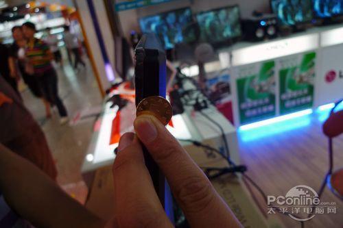 S221HQL的超薄设计绝非徒有虚名,显示器最薄处厚度竟不及一个5毛硬币的直径。编辑不是5毛党,有图为证,铁证如山