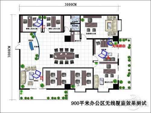 900平米的办公环境下对无线由器的信号覆盖效果测试(点图放大)