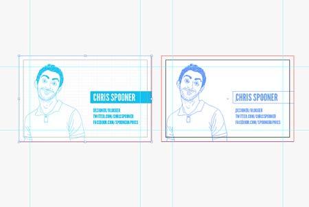 选中名片前边所有编辑部分,按住ALT键把它们拖到卡片的背面。把所有边线都排列到出血区的参考线上,然后删除人物、背景网络和个人信息。(图19)