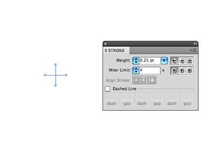 点击直线工具,用一支10%的黑色画笔来画一条短线,复制(CMD/Ctrl+C)然后粘贴(CMD/Ctrl+F),接着旋转90度。拖出一个选择区 域同时选择两个东西,把他们拖进色板面板(Swatches palette)里。删除在画板左边原来那两条直线。(图13)