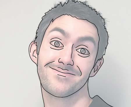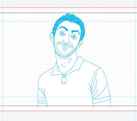 首先,让我们从这张线条型的人物粗略图开始吧。把图片上你的最佳笑容挖出来,然后放进Illustrator 里,把opacity 降低,按住CMD/Ctrl和2把它锁定到位。(图02)