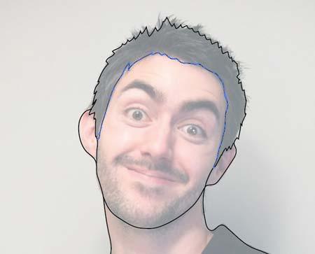 继续你的绘画路径,但这一次把脸部轮廓和头发的线条勾勒出来。如果你想在画偏或画错之后不想重新开始的话,而是稍微改正画错或画偏部分,在绘画之前启用 编辑所选路径将是一个很聪明的选择。(图04)