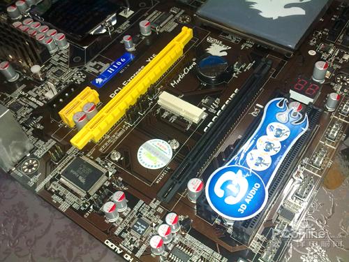 捷波 悍马HI06主板提供了2条PCI-E 16X显卡插槽,支持双显卡交火模式,同时还包括1条Mini PCIE插槽和1条PCI扩展插槽,方便玩家连接无线网卡、声卡等辅助设备。