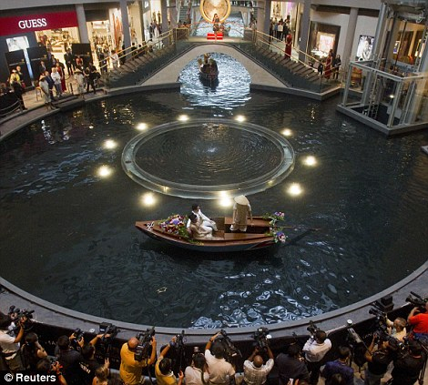 滨海湾金沙度假酒店每晚的房价高达350英镑,由建筑大师萨夫迪根据扑克牌的外形设计。走进度假酒店,购物者可以乘坐根据17世纪中国传统船只样式打造的小木船在一条室内运河内游玩。