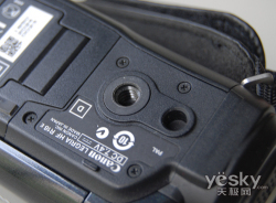 机身的顶部为变焦按键和拍照按键,佳能R18提供了录拍合一模式,这个模式让拍摄变得更加轻松自如。在启用录拍合一模式后,摄像机会自动切换到影片拍摄模式,轻按机身上的PHOTO按钮,摄像机就会从影片拍摄模式自动切换为静止图像拍照模式;拍完照片后,摄像机又会自动切换成影片拍摄模式,省去了我们之前评测的FS系列拨动转盘切换模式的麻烦。