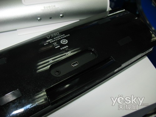 奋达V350音箱采用音源“一线牵”的时尚设计,是这款机箱的一大亮点。所谓音源“一线牵”,具体的来说就是音频和电源采取USB一线接通,供电和信号一线完成。一方面,简化了连接过程,另一方面也使得笔记本音箱的随行出游变得更为简单。供电上,奋达V350音箱采取电池、USB双供电模式,音箱可以脱离笔记本,轻松接驳MP3等各类音源,播放无拘无束。