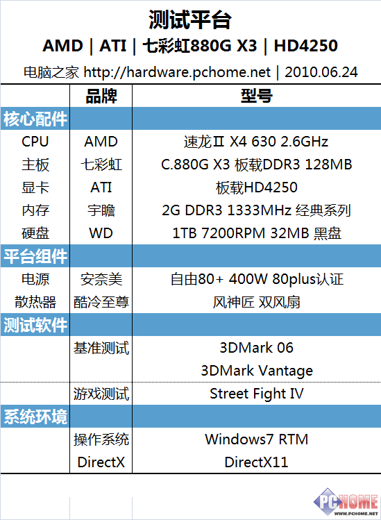 测试平台依旧选择了大众化配置,更真实贴近购买此款主板用户的配置,在处理器方面我们选用了四核处理器中性价比极高的X4 630处理器,内存上我们也仅仅选用了单条2G 1333内存,毕竟购买此款主板的朋友大多数为了够用。测试项目上我们选择了比较公正而又大多数玩家朋友都在用的3Dmark测试软件,在在游戏端笔者仅仅选择了这款街霸4游戏,原因很简单,主板所集成的入门级显卡毕竟不是为专业游戏而推出的,选择过多大型游戏仅仅会增加玩家朋友们的反感,同时测试的大型游戏并不能保证30fps流畅帧数,极大的影响了游戏性。