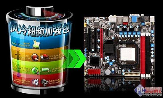 近日七彩虹在AMD新 8系主板中又推出了风冷加强包一套完整的智能化功能。提起超频并非所有人都会,但是七彩虹凭借着多年来的用户信息反馈加上技术人员对BIOS的精心研发, 制作了这套风冷超频加强包功能,电脑爱好者并不需要了解电脑超频中的诸多原理,而仅仅需要通过快捷键操作,主板便会自动测试出一套完美的超频数值,消费者 并不用担心超频后所带来的不稳定,发热提高等问题,这些主板都会进行精确计算,同时提高电脑整体性能。下面就让我们来了解下"风冷超频加强包"。