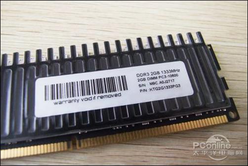 通过正面的内存标签,我们能了解到这款内存的容量为2GB,其默认的工作频率为1333MHz,实际运行的数据传输速度为10.644G,速度是普通DDR2-800内存的1.67倍,对PC整体的性能提升非常大。从右侧的内存标识上我们可清楚的看到,该产品型号为KTG2G1333PG3,而内存散热片上有清晰的“GAME Edition”的字样,表明其游戏内存身份。