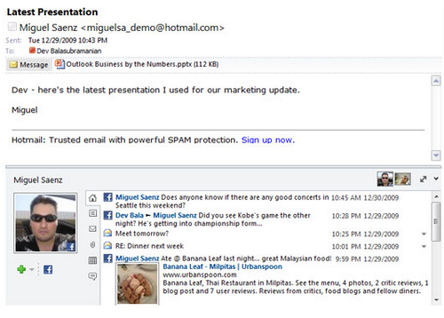 Outlook 2010年相对之前版本有了很多改进,其中包括能够使用多个外汇账户,邮件中的日历预览,能够在邮箱底部看到同个收件人的其他邮件等。
