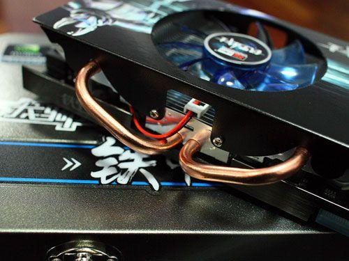 铁甲9800GT 1GB DDR3 龙骑士装备全新的散热系统“风暴之眼”增压散热器,采用双滚珠设计双滚珠风扇优点是寿命较长,大约在50000 ~100000小时;抗老化性能好,适合转速较高的风扇。采用的复合铝散热技术,这样的设计主要是铜的瞬间吸热能力比铝的好,在贴近GPU时能很好的把热量吸收出来,而铝散热最快但是热容小,适合大面积散热片覆盖。