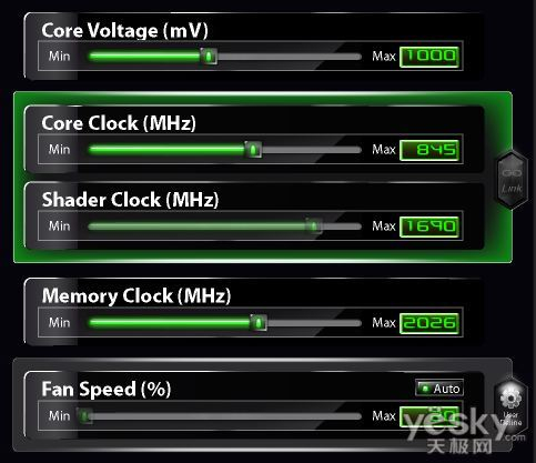 NVIDIA目前未开放GeForce GTX 400系列的核心、Shader频率比例,所以超频过程中为1:2等比超频,这在一定程度上限制了我们的手脚,否则GTX460还有更大的性能空间可供发掘。