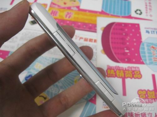 U100机身机构为滑盖设计,纯黑主色调加上白色线条的点缀,整体感觉较为简洁。U100的外观设计和U1、U10相比显得有些保守,不过也更符合大众的审美观。值得表扬的是,U100的导航键和快捷键比较宽大,使用起来手感应该不错。U100是一款传统的滑盖手机,从侧面上看上去还是相当苗条的。