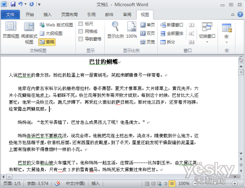 “草稿视图”取消了页面边距、分栏、页眉页脚和图片等元素,仅显示标题和正文,是最节省计算机系统硬件资源的视图方式。当然现在计算机系统的硬件配置都比较高,基本上不存在由于硬件配置偏低而使Word2010运行遇到障碍的问题,如图5所示。