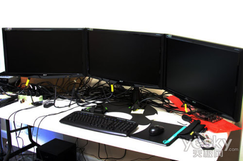 而在去年AMD发布DX11显卡时同时宣布了一项技术叫做Eyefinity,并在现场演示了六屏输出,从此俘虏了很多人的心。