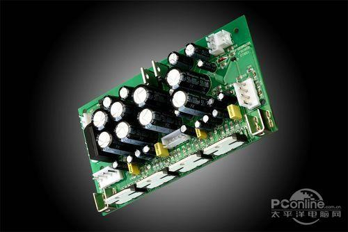 音箱的左右两个独立后级都采用了IGBT作为功率放大IC,IGBT(Insulated Gate Bipolar Transistor),绝缘栅极型功率管,是由BJT(双极型三极管)和MOS(绝缘栅型场效应管)两种设计方案结合的复合全控型电压驱动式电力电子器件。是强电流、高压应用和快速终端设备用垂直功率MOSFET的自然进化,相比MOSFET,他具有较低的阻抗,这对增强功放对单元的控制力是很有助益的(原理详见《技术提升还是乱忽悠?五大音箱卖点透视》)。