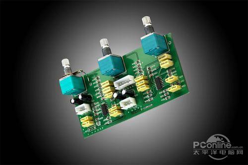 M200MKIII是惠威采用专业有源电子分频技术精心打造的多媒体2.0旗舰型产品,前级电子分频电路是整套系统的核心组件之一。它采用了墨绿色双层玻璃纤维板并全部采用SMT(表面贴片技术)工艺,让复杂的电子分频电路浓缩在一块电路板上。M200MKIII在前级的有源电子分频电路中全部采用进口 CBB电容(金属化聚丙稀电容)。金属化聚丙稀电容俱有低损耗、精度高、绝缘性强、有自愈性、高抗干扰等特点;CBB电容的高频特性比普通的无极电容更加优异,音频特性更好,是用于电子分频电路的绝佳之选。在音色微调方面,M200MKIII的高音与低音旋钮分别提供低频±3dB(100Hz),高频±3dB(10kHz)的调节范围。