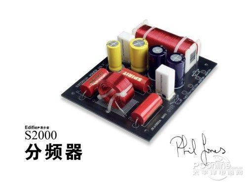 扬声器再好,也只能提供一个做一套好音箱的良好基础,不是用了好扬声器就一定能发出优美的声音,就像美食一样,扬声器是各种配料,要做得好吃,最关键还得看厨师的手艺,而分频器正是这位“厨师”,声音好不好听,分频器起到了最关键作用。这款分频器由“大厨”Phil Jones主持校调,比起Edifier以前展示过的其他型号的分频器要复杂了很多,这款分频器能很好的协调这两款扬声器,使得S2000有一条平直的频响曲线,Phil Jones将更多的精力倾注在音色的校调上,S2000音色因此变得温暖厚重,成熟稳重的声音风格让人过耳难忘。
