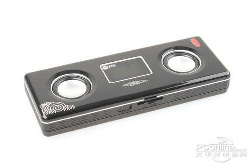 将音箱取出后,我们看到音箱主单元由两枚大约一寸的碗盆全频单元组成,正面有信息显示液晶屏,左下角及中部有祥云图案。与外包装一样,右上角注明了“珍藏版字样”。