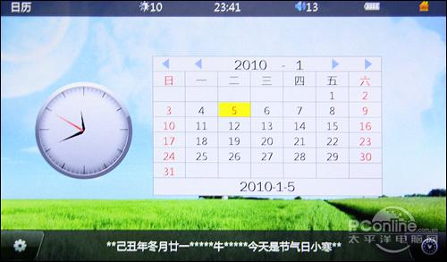 日历界面下,有指针时钟于屏幕左方,日期以清晰明了的形式呈现,屏幕下方还可以知道农历相关的信息,其中包括有节气。