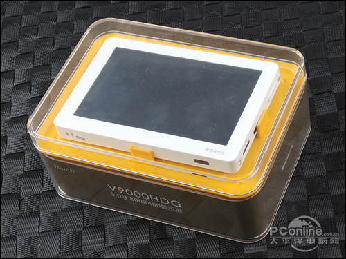 艾诺V9000HDG凭借独树一帜的透明聚酯玻璃包装盒让人眼前一亮,看的出来此款包装盒经过艾诺的精心打造,一扫以往MP4产品纸质包装的传统,凸显V9000HDG的地位,让人爱不释手。