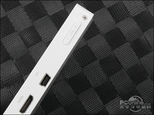 机身右侧从上到下依次是TF卡插槽、MIC孔、DC电源孔、耳机孔以及HDTV插孔。